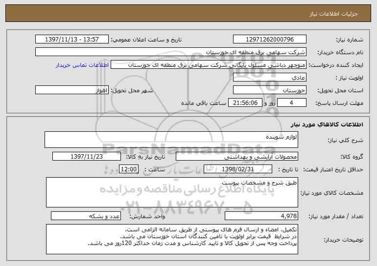 نام دستگاه خریدار:شرکت سهامی برق منطقه ای خوزستان