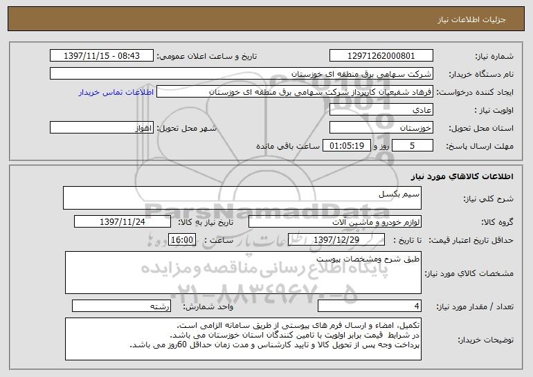 نام دستگاه خریدار:شرکت سهامی برق منطقه ای خوزستان