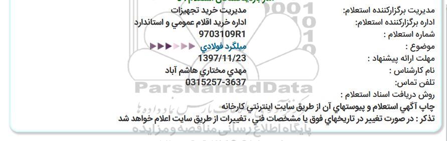 اداره برگزارکننده استعلام: اداره خرید اقلام عمومی و استاندارد