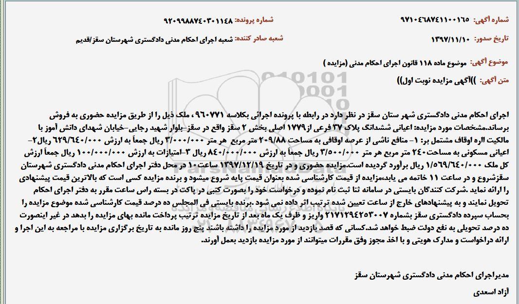 اجرای احکام مدنی دادگستری شهرستان سقز