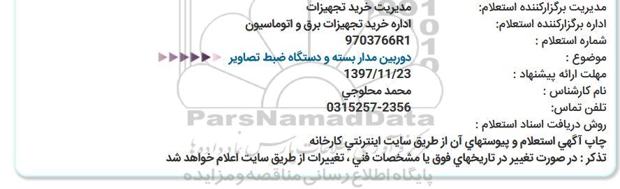 اداره برگزارکننده استعلام: اداره خرید تجهیزات برق و اتوماسیون