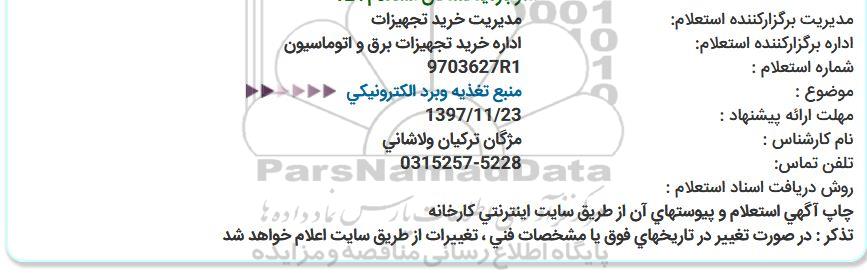 استعلام منبع تغذیه وبرد الکترونیکی , استعلام ، استعلام منبع تغذیه وبرد الکترونیکی