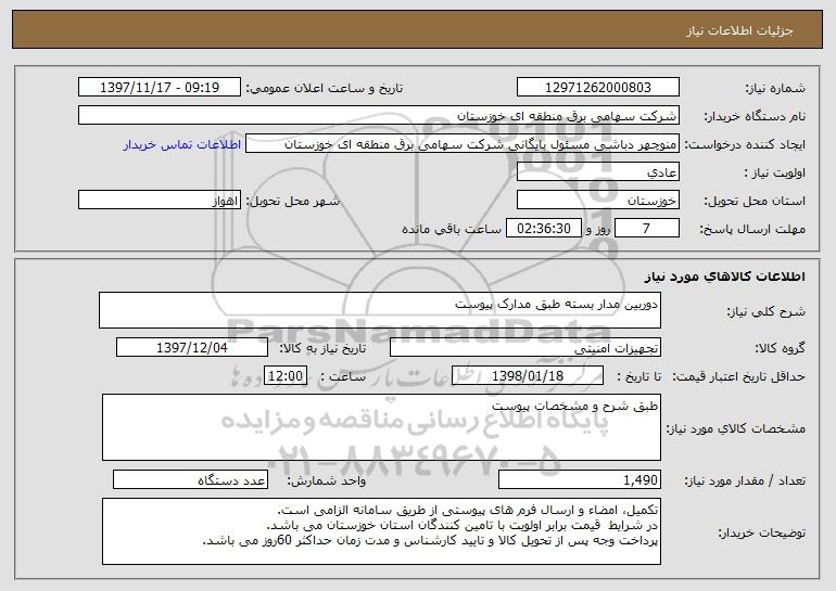 نام دستگاه خریدار:شرکت سهامی برق منطقه ای خوزستان