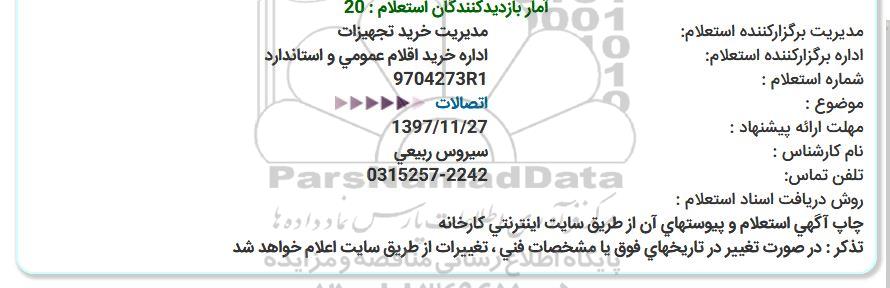 اداره برگزارکننده استعلام: اداره خرید اقلام عمومی و استاندارد