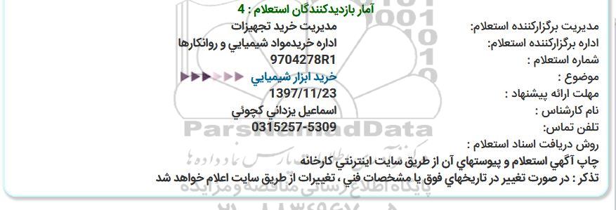 استعلام خرید ابزار شیمیایی , استعلام خرید ابزار شیمیایی