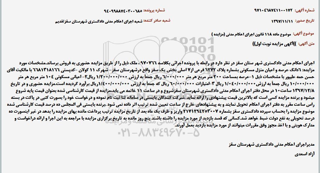 اجرای احکام مدنی دادگستری شهرستان سقز
