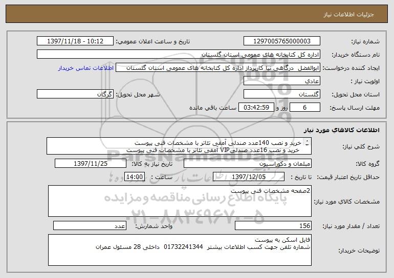 نام دستگاه خریدار:اداره کل کتابخانه های عمومی استان گلستان