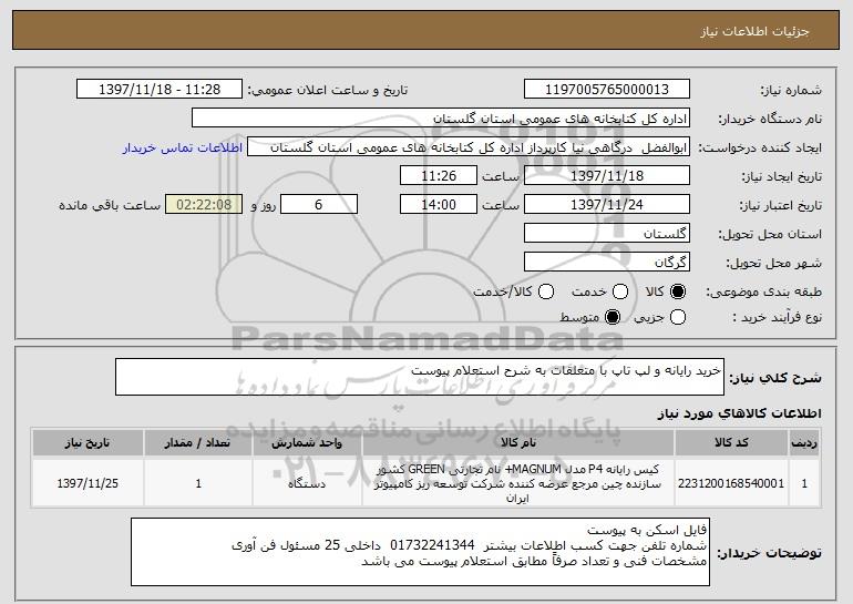 نام دستگاه خریدار:اداره کل کتابخانه های عمومی استان گلستان