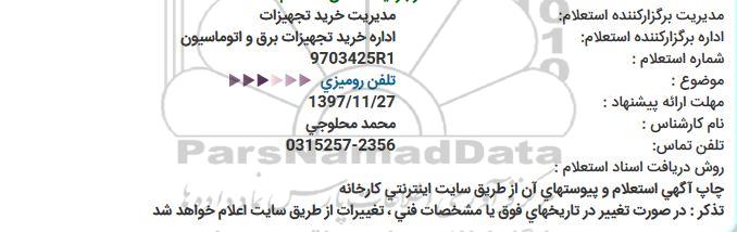 اداره برگزارکننده استعلام: اداره خرید تجهیزات برق و اتوماسیون