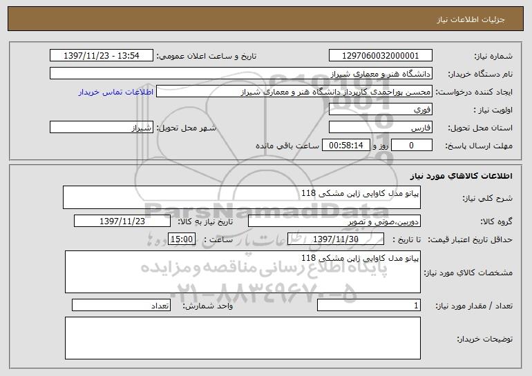 نام دستگاه خریدار:دانشگاه هنر و معماری شیراز