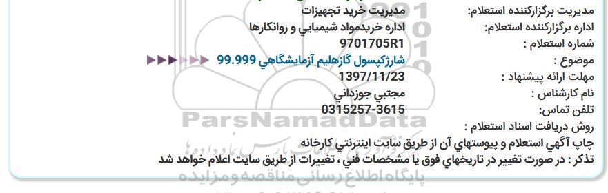اداره برگزارکننده استعلام : اداره خرید مواد شیمیایی و روانکارها
