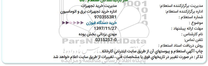 اداره برگزارکننده استعلام اداره خرید تجهیزات برق و اتوماسیون