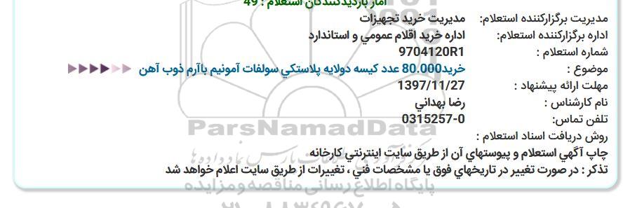 موضوع : خرید80.000 عدد كیسه دولایه پلاستكی سولفات آمونیم باآرم ذوب آهن