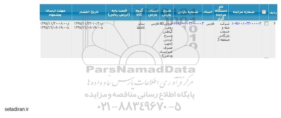 نام دستگاه مزایده گذار : شرکت غله و خدمات بازرگانی منطقه 3