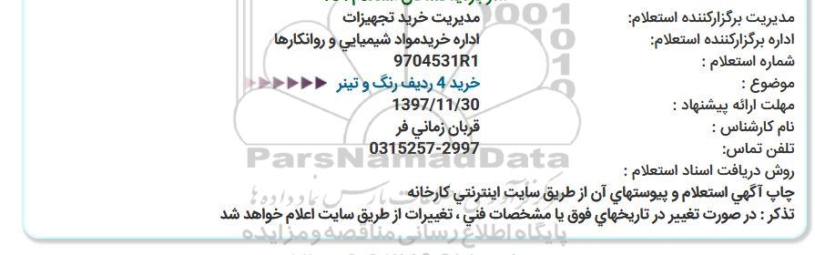 اداره برگزارکننده استعلام: اداره خریدمواد شیمیایی و روانكارها
