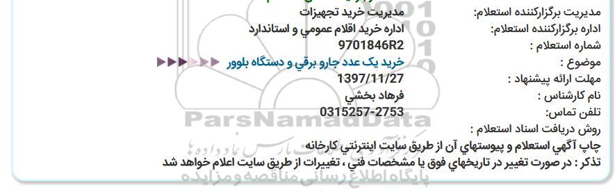 اداره برگزارکننده استعلام: اداره خرید اقلام عمومی و استاندارد