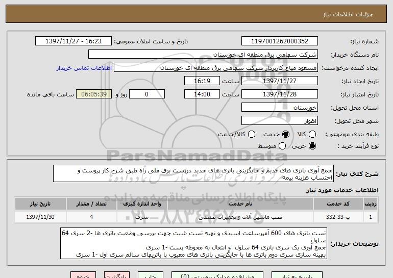 استعلام جمع آوری باتری های قدیم و جایگزینی باتری های جدید درپست برق ملی راه طبق شرح کار پیوست و احتساب هزینه بیمه , استعلام جمع آوری باتری های قدیم و جایگزینی باتری های جدید درپست برق ملی راه طبق شرح کار پیوست و احتساب هزینه بیمه