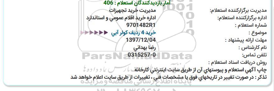 استعلام خرید 4 ردیف کولر آبی , استعلام ,استعلام خرید 4 ردیف کولر آبی