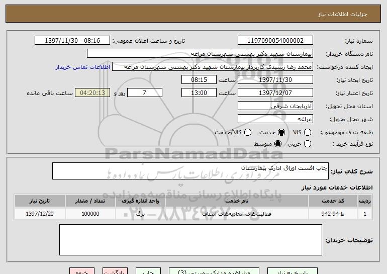 شرح کلی نیاز: چاپ افست اوراق اداری بیمارستان