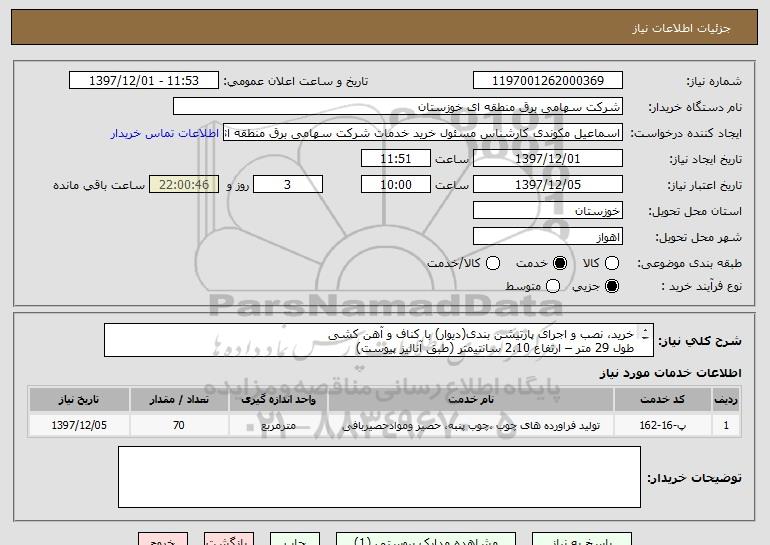 نام دستگاه خریدار:شرکت سهامی برق منطقه ای خوزستان