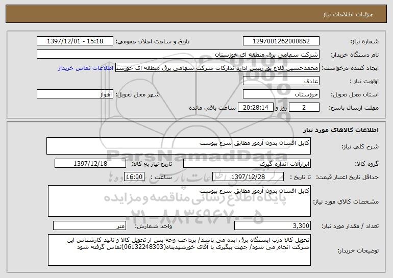 مشخصات کالای مورد نیاز: کابل افشان بدون آرمور مطابق شرح پیوست