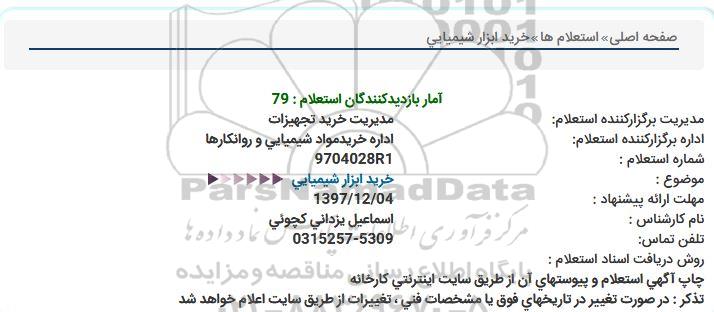 استعلام خرید ابزار شیمیایی , استعلام, استعلام خرید ابزار شیمیایی