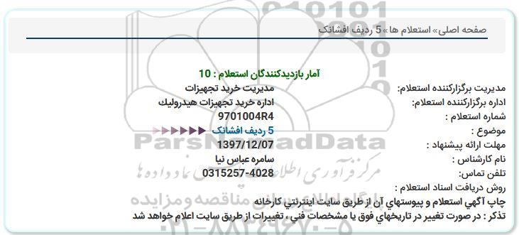 اداره برگزارکننده استعلام: اداره خرید تجهیزات هیدرولیک