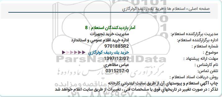 اداره برگزارکننده استعلام: اداره خرید اقلام عمومی و استاندارد