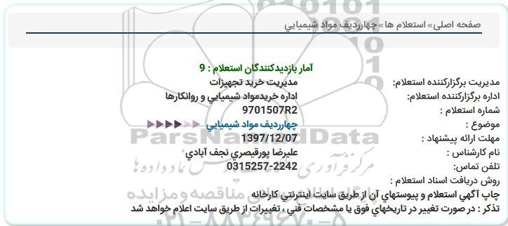 اداره برگزارکننده استعلام: اداره خریدمواد شیمیایی و روانکارها