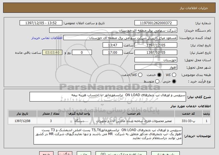 استعلام سرویس و اورهال تپ چنجرهای ON LOAD ترانسفورماتور -با احتساب هزینه بیمه , استعلام سرویس و اورهال تپ چنجرهای ON LOAD ترانسفورماتور -با احتساب هزینه بیمه