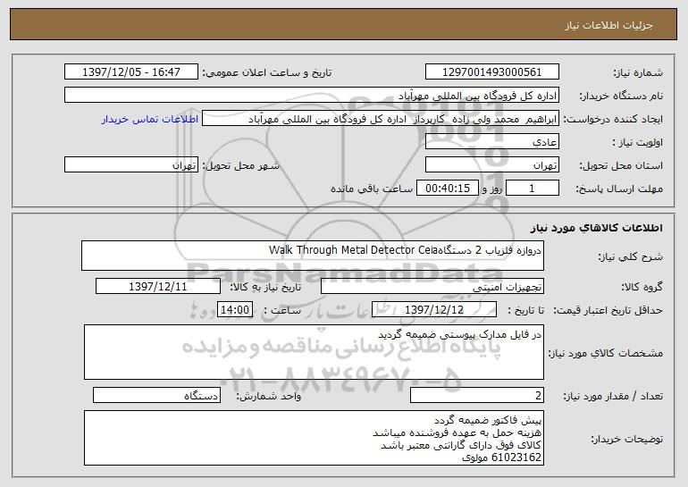 شرح کلی نیاز: دروازه آشکار ساز فلز 2 دستگاهWalk Through Metal Detector Ceia