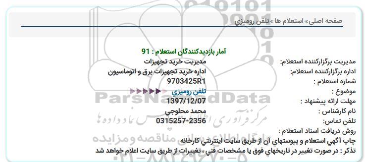 اداره برگزارکننده استعلام: اداره خرید تجهیزات برق و اتوماسیون