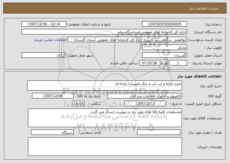 نام دستگاه خریدار:اداره کل کتابخانه های عمومی استان گلستان