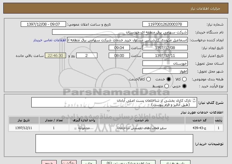 شرح کلی نیاز: نازک کاری بخشی از ساختمان پست اصلی آبادان