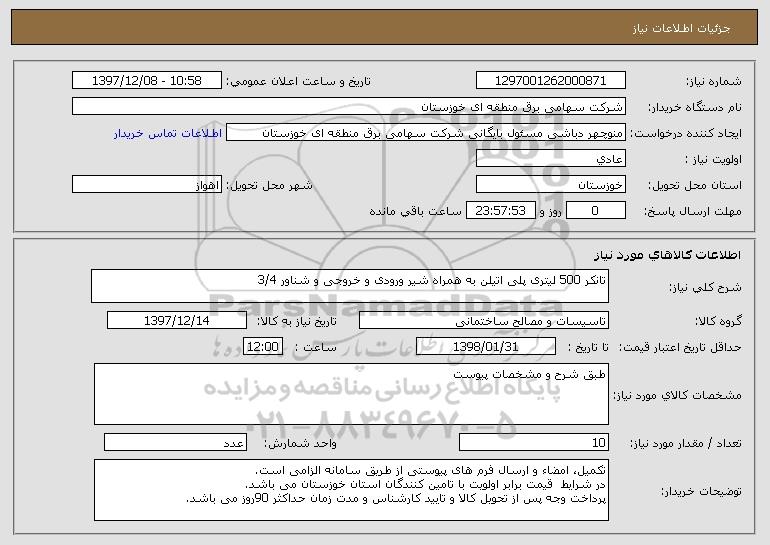 نام دستگاه خریدار:شرکت سهامی برق منطقه ای خوزستان