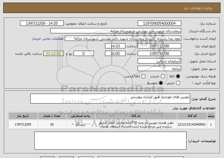 نام دستگاه خریدار:بیمارستان شهید دکتر بهشتی شهرستان مراغه