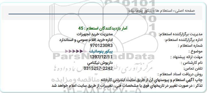 اداره برگزارکننده استعلام: اداره خرید اقلام عمومی و استاندارد