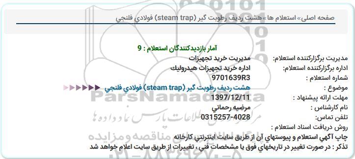 موضوع : هشت ردیف رطوبت گیر steam trap فولادی فلنجی