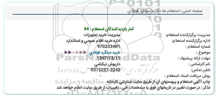 اداره برگزارکننده استعلام: اداره خرید اقلام عمومی و استاندارد
