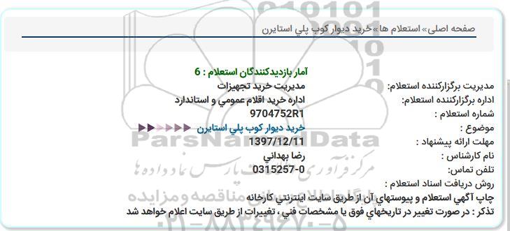 اداره برگزارکننده استعلام: اداره خرید اقلام عمومی و استاندارد