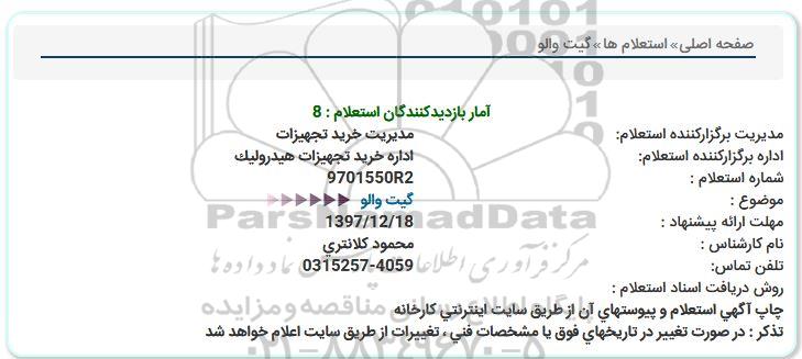 اداره برگزارکننده استعلام: اداره خرید تجهیزات هیدرولیک