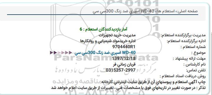 اداره برگزارکننده استعلام: اداره خریدمواد شیمیایی و روانکارها