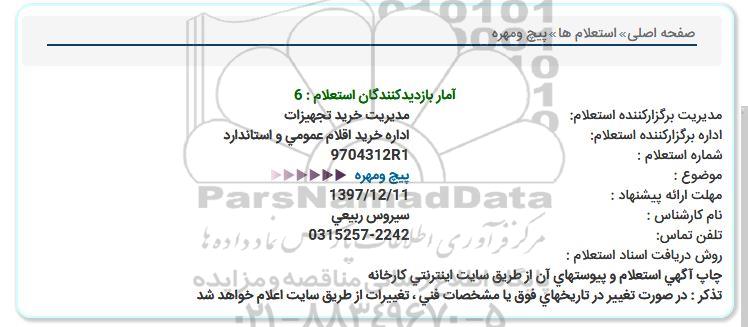 اداره برگزارکننده استعلام: اداره خرید اقلام عمومی و استاندارد