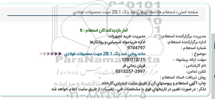 موضوع : ماده روغنی ضد زنگ ZB.1 جهت محصولات فولادی