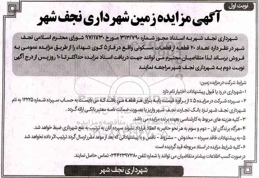 مزایده فروش 20 قطعه از قطعات مسکونی فاز 5 نوبت اول , آگهی مزایده مزایده فروش 20 قطعه از قطعات مسکونی فاز 5 نوبت اول