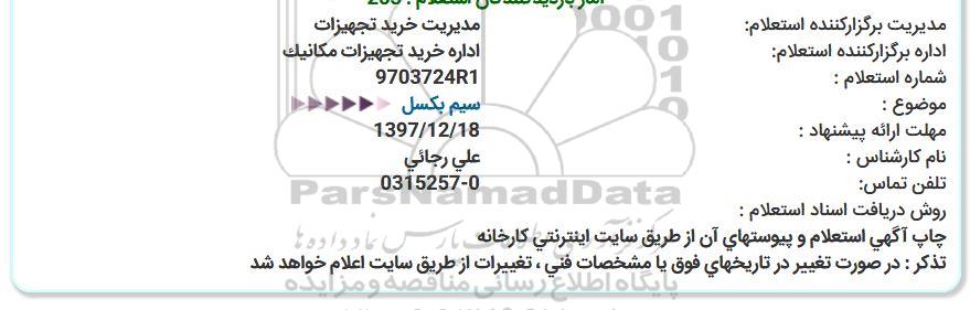 اداره برگزارکننده استعلام: اداره خرید تجهیزات مکانیک