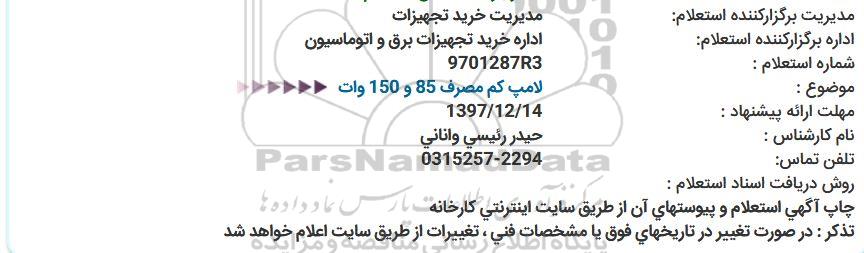 اداره برگزارکننده استعلام: اداره خرید تجهیزات برق و اتوماسیون