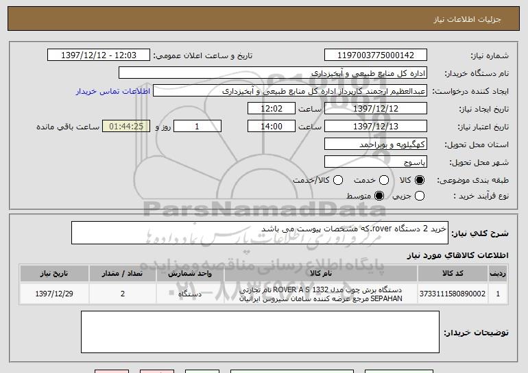 استعلام خرید 2 دستگاه rover.که مشخصات پیوست می باشد, استعلام خرید 2 دستگاه rover.که مشخصات پیوست می باشد