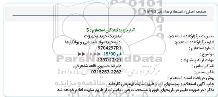اداره برگزارکننده استعلام: اداره خرید مواد شیمیایی و روانکارها