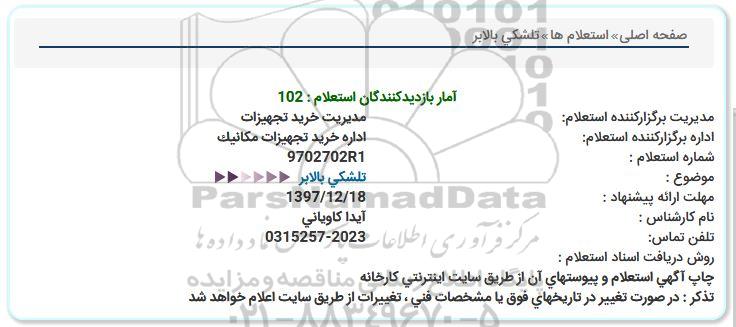 اداره برگزارکننده استعلام: اداره خرید تجهیزات مکانیک